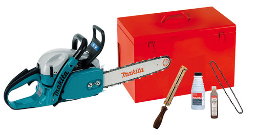 - Geleverd in een metalen koffer met twee kettingen, een kettingvijl, een flacon tweetaktolie en een bus kettingolie.