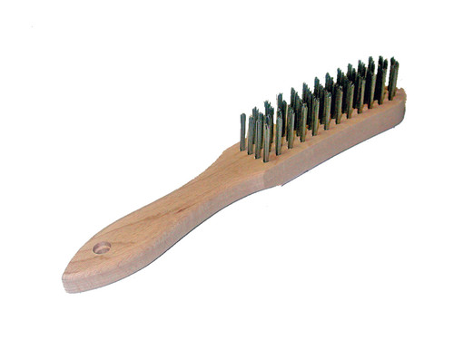 BROSSE MÉTALLIQUE FIL EN ACIER INOX DROIT AVEC MANCHE EN BOIS 5 RANGÉES
